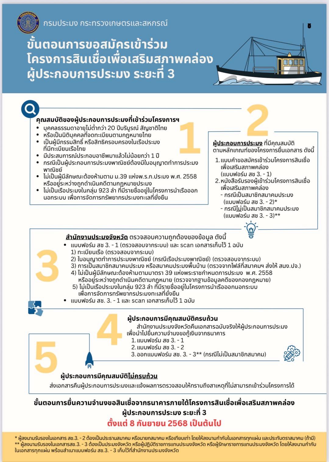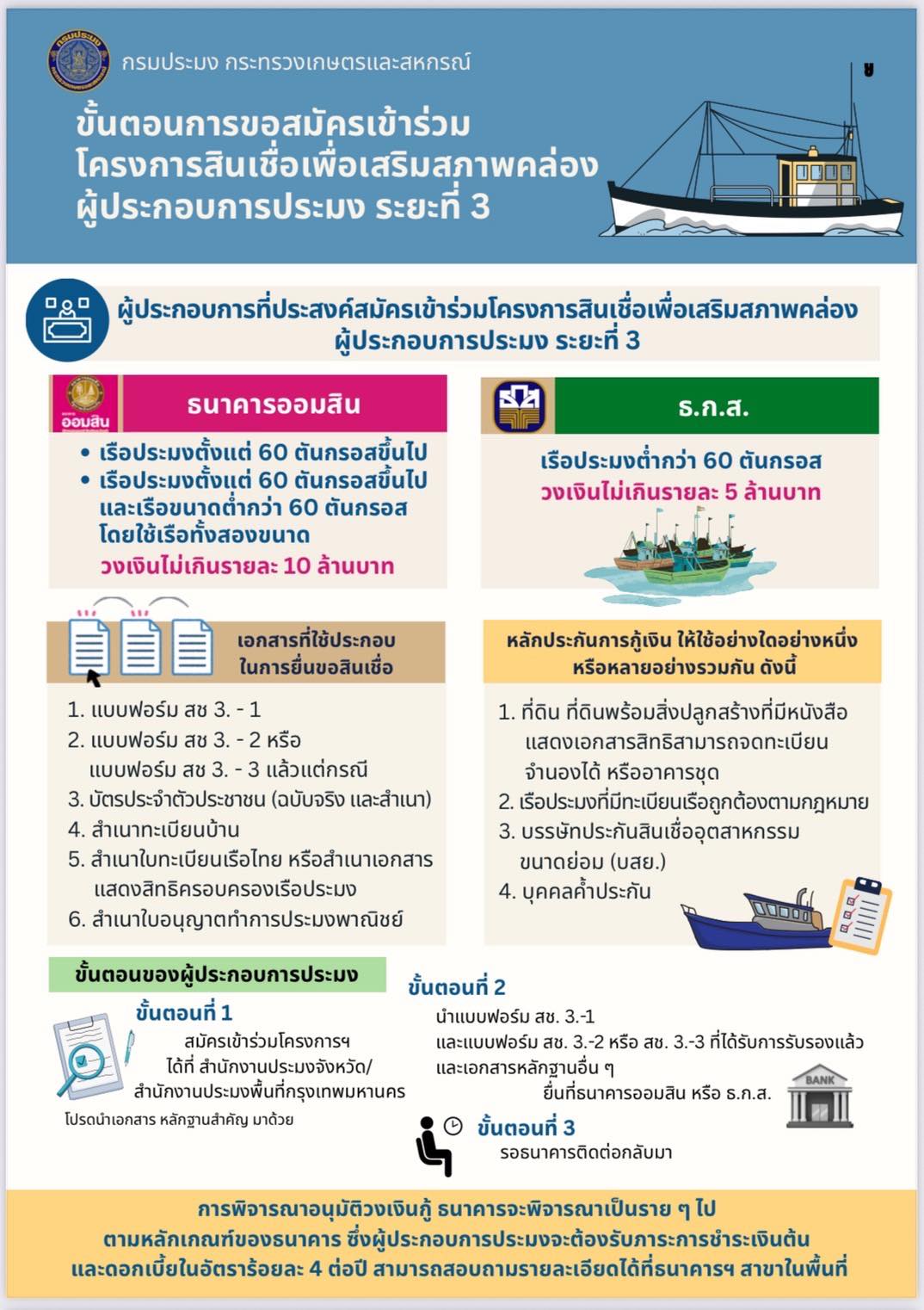 "โครงการสินเชื่อเพื่อเสริมสภาพคล่องผู้ประกอบการประมง ระยะที่ 3"