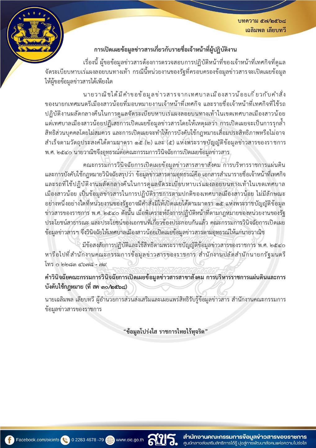ภาพที่เกี่ยวข้อง ประกาศเทศบาลนครอ้อมน้อย เรื่อง เผยแพร่ความรู้เกี่ยวกับพระราชบัญญัติข้อมูลข่าวสารของราชการ พ.ศ. 2540 จำนวน 5 เรื่อง