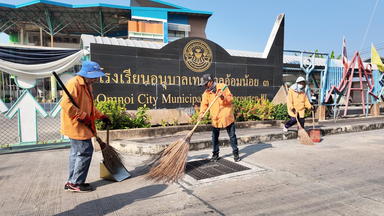นายบุญชู นิลถนอม นายกเทศมนตรีนครอ้อมน้อย มอบหมายให้ รองนายกเทศมนตรีนครอ้อมน้อย ประธานสภาเทศบาล รองประธานสภาเทศบาล สมาชิกสภาเทศบาล เลขานุการฯ ที่ปรึกษาฯ พนักงานเทศบาล และอาสาสมัครท้องถิ่นรักษ์โลก เข้าร่วมกิจกรรม “โครงการรณรงค์รักษาความสะอาด” บริเวณหน้าโรงงานยาง AEC ถีง โรงเรียนอนุบาลเทศบาลอ้อมน้อย 3