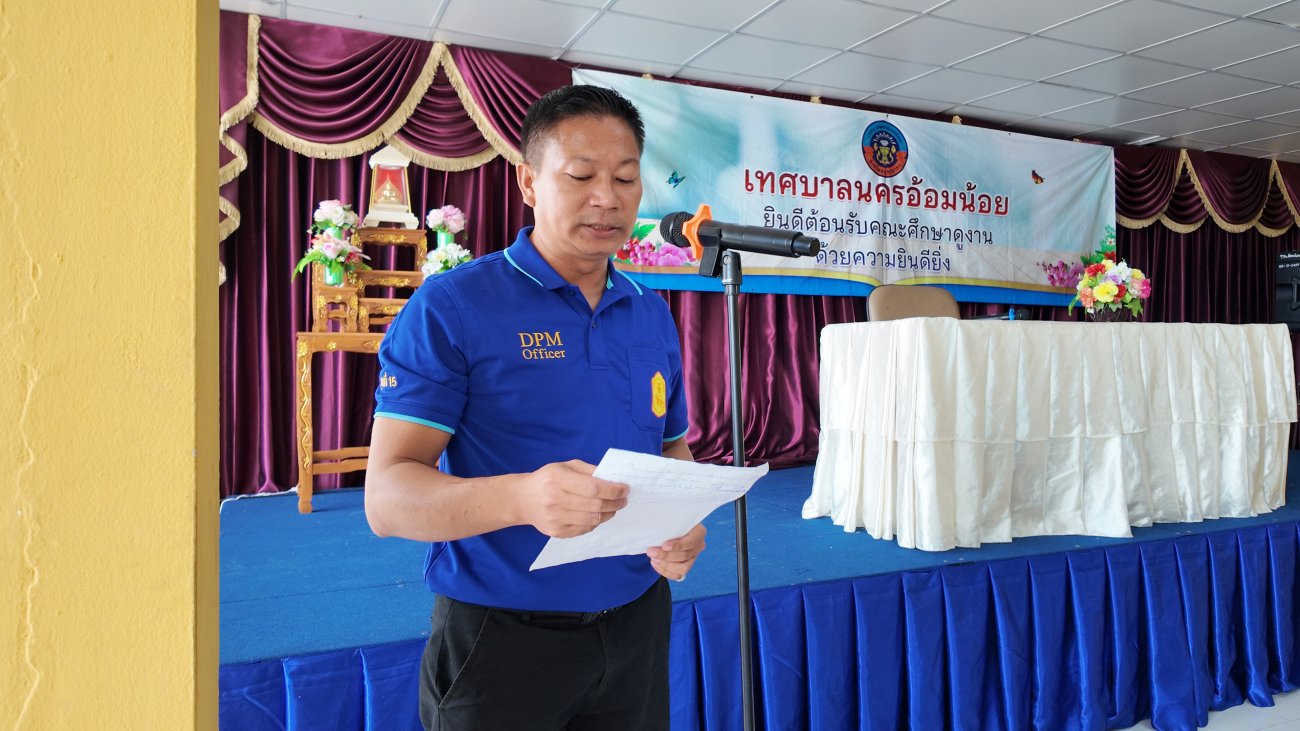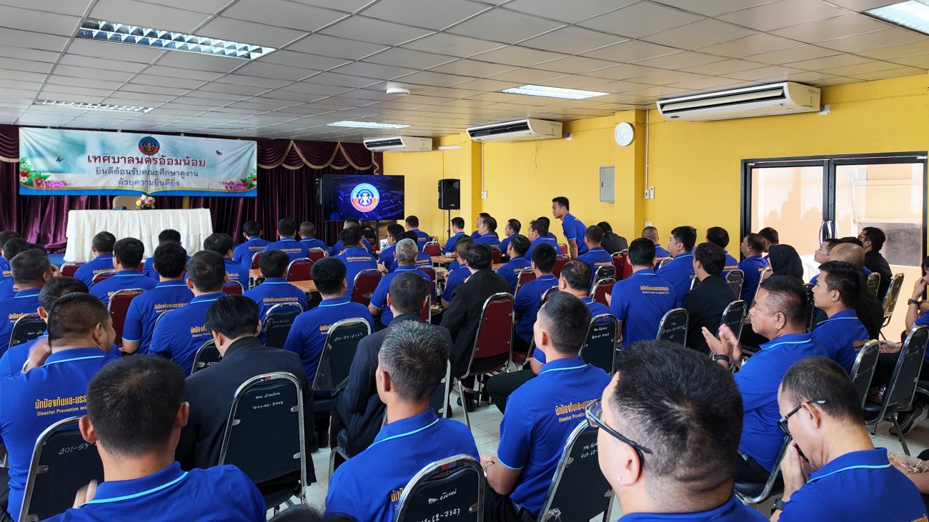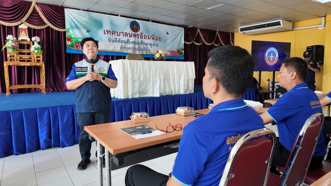 นายบุญชู นิลถนอม นายกเทศมนตรีนครอ้อมน้อย มอบหมายให้ นายประสงค์ แสงวิรุณ รองนายกเทศมนตรี เป็นประธานในการกล่าวต้อนรับคณะศึกษาดูงาน "โครงการฝึกอบรมหลักสูตรนักป้องกันและบรรเทาสาธารณภัย รุ่นที่ 15” จากสถาบันพัฒนาบุคลากรท้องถิ่น จำนวน 70 คน ณ ศูนย์ป้องกันและบรรเทาสาธารณภัย (ด่านช่าง)