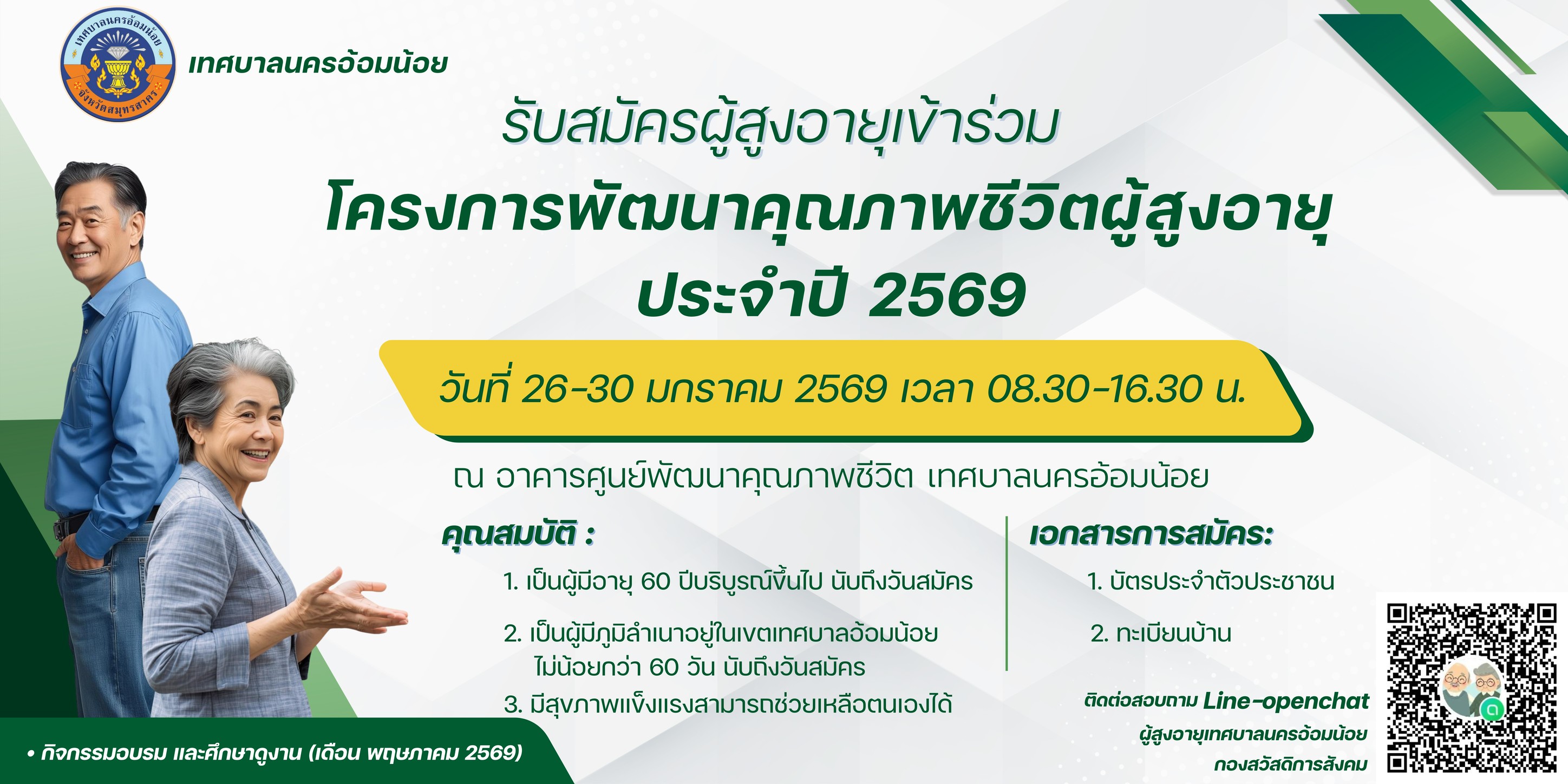 ประกาศเทศบาลนครอ้อมน้อย เรื่อง รับสมัครนักเรียนในโรงเรียนอนุบาลเทศบาลนครอ้อมน้อย ๒ ประจำปีการศึกษา ๒๕๖๙