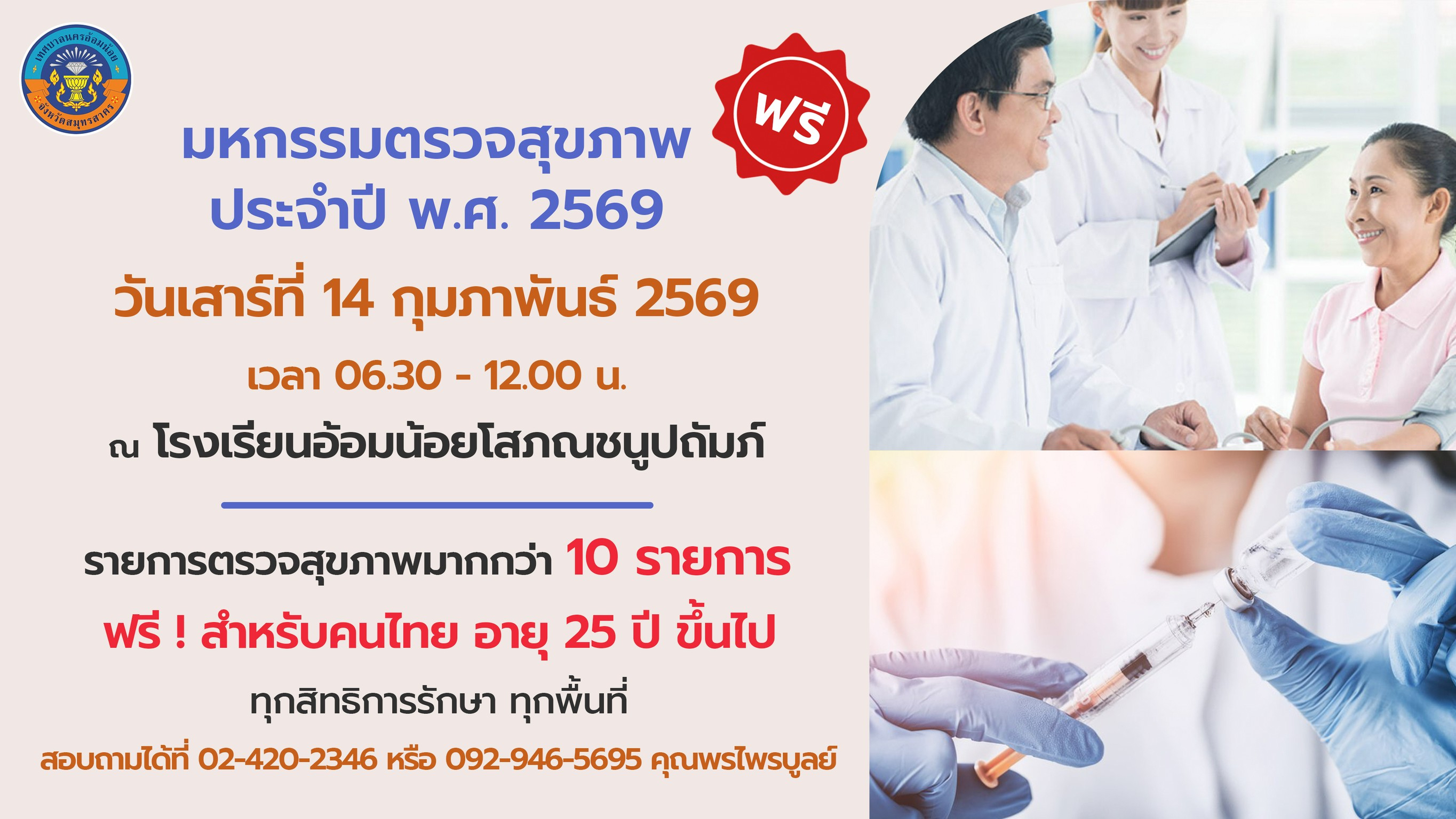 ประชาสัมพันธ์ งานส่งเสริมสุขภาพ ด้านงานอนามัยโรงเรียน กองสาธารณสุขและสิ่งแวดล้อม เทศบาลนครอ้อมน้อย ประจำปีงบประมาณ 2568 ได้ดำเนินการเรียบร้อยแล้ว