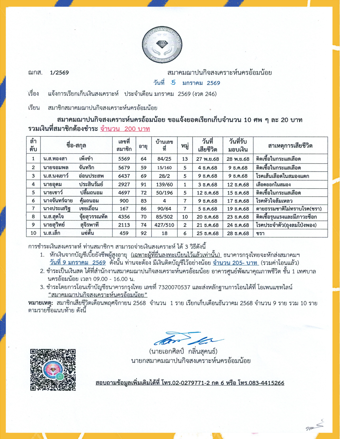2. แจ้งการขอเรียกเก็บเงินสงเคราะห์ประจำเดือน มกราคม 2569 (งวด 246)
