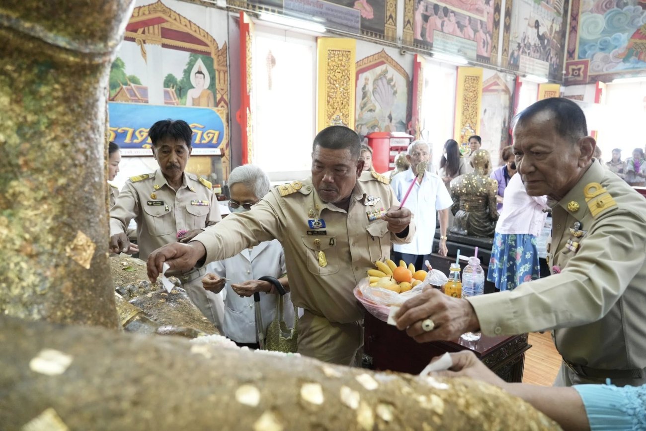 นายบุญชู นิลถนอม นายกเทศมนตรีนครอ้อมน้อย พร้อม ประธานสภาฯ รองประธานสภาฯ สมาชิกสภาฯ รองนายกเทศมนตรี ที่ปรึกษาฯ เลขานุการฯ ปลัดเทศบาล ผู้อำนวยการกอง ผู้อำนวยการสำนักการศึกษา และพนักงานเทศบาล เข้าร่วมพิธีเปิด “งานประจำปีปิดทองหลวงพ่อเพ็ง ประจำปี 2569“ ณ วัดอ้อมน้อย
