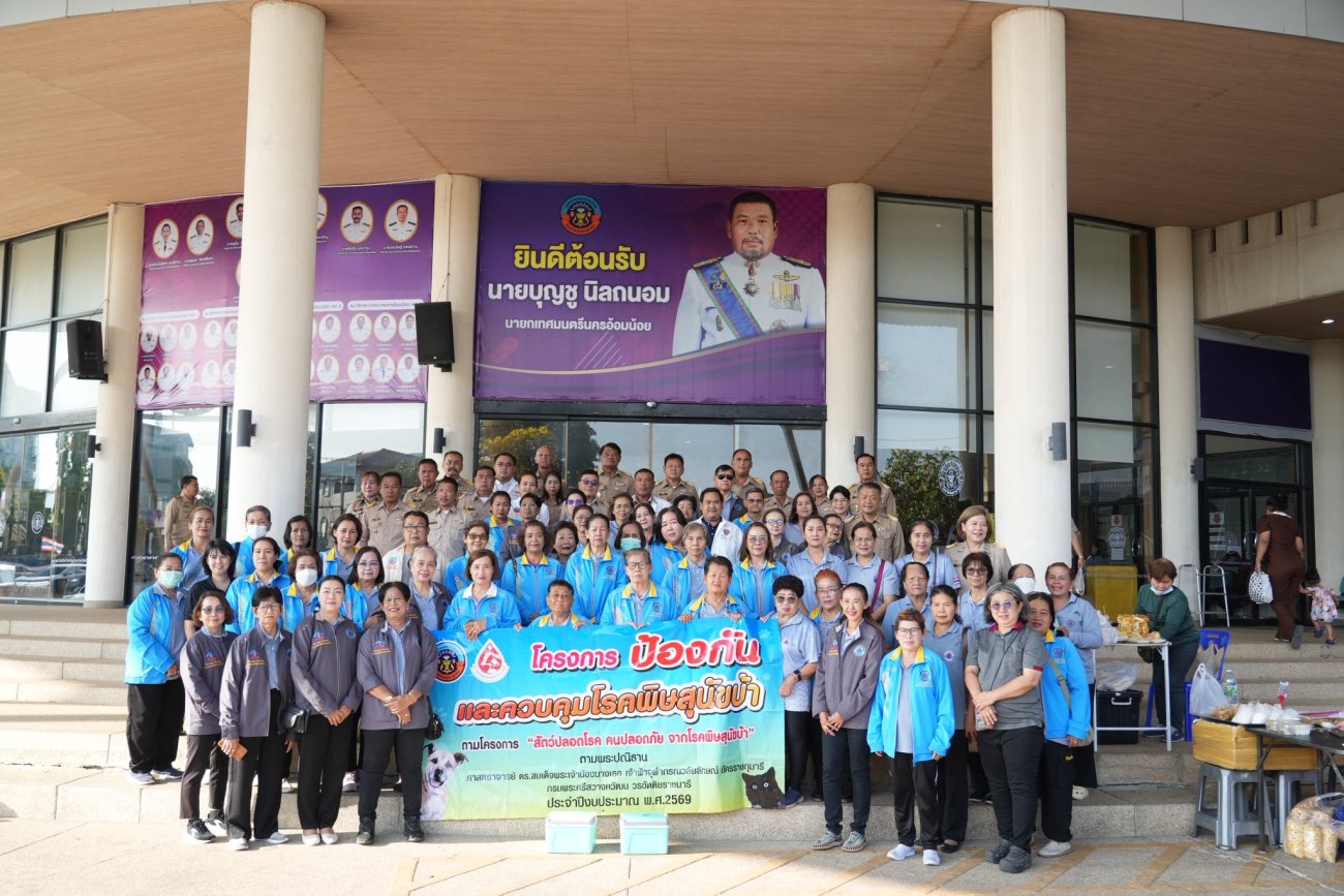 เทศบาลนครอ้อมน้อย นำโดย นายบุญชู นิลถนอม นายกเทศมนตรีนครอ้อมน้อย พร้อม คณะผู้บริหาร สมาชิกสภาเทศบาล ผู้อำนวยการกอง พนักงานเทศบาล และ อสม.อ้อมน้อย ร่วมพิธีเปิด "โครงการป้องกันและควบคุมโรคพิษสุนัขบ้า ประจำปีงบประมาณ พ.ศ.2569" ณ บริเวณหน้าสำนักงานเทศบาลนครอ้อมน้อย