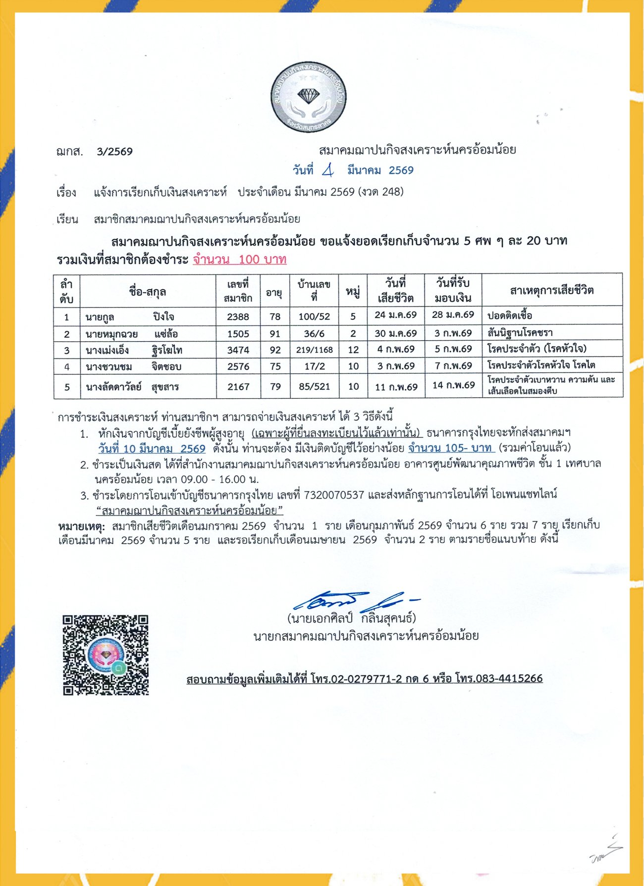 2. แจ้งการขอเรียกเก็บเงินสงเคราะห์ประจำเดือน มีนาคม 2569 (งวด 248)