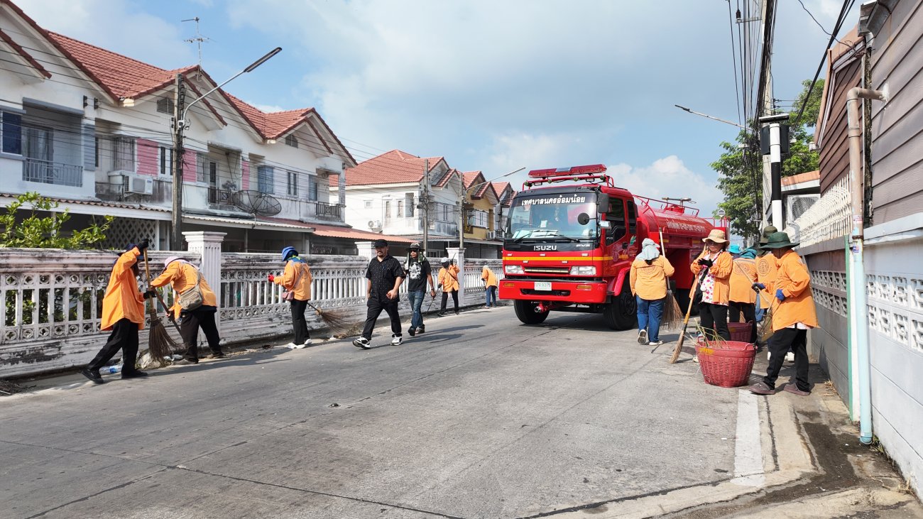 นายบุญชู นิลถนอม นายกเทศมนตรีนครอ้อมน้อย ลงพื้นที่ร่วมกิจกรรม ”รณรงค์ทำความสะอาด ชาวอ้อมน้อยร่วมใจ รวมพลังลดฝุ่น PM 2.5” โดยมีรองนายกเทศมนตรี ที่ปรึกษาฯ เลขานุการฯ ประธานสภาเทศบาล รองประธานสภาเทศบาล สมาชิกสภาเทศบาล พนักงานเทศบาล พร้อม อาสาสมัครท้องถิ่นรักษ์โลก เข้าร่วมกิจกรรมทำความสะอาดในครั้งนี้ ณ หมู่บ้านปริญญาฉัตร